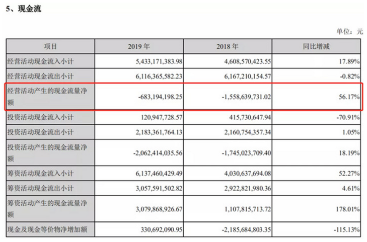 对于国轩高科而言,此次与大众的合作也不失为一种顺势的选择。根据国轩高科2019年年报,其营收同比仅下降3%,但利润却由5.8亿元直降到5100万元,其财务费用同比更是大增170%。现金流层面,虽然相比2018年有所缓解,但仍有-6.83亿元,这也是国轩高科连续第三年经营活动产生的现金流量为负。