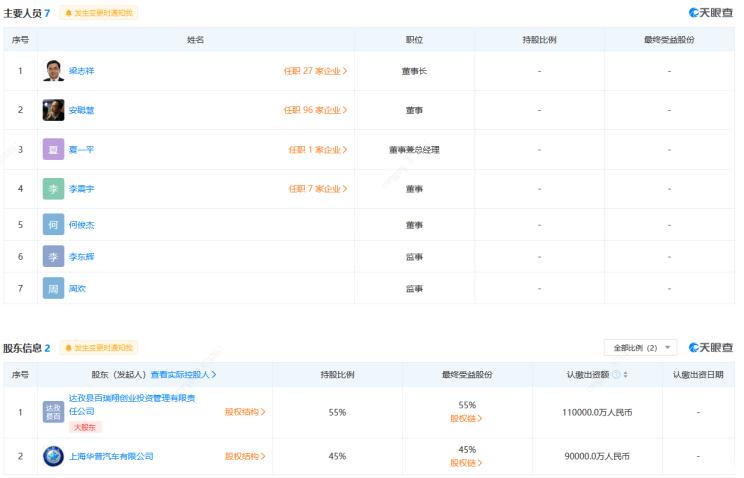 在业务方面,公司业务范围包括新能源汽车整车及相关零部件的技术服务;汽车零部件及配件制造;新能源汽车整车销售;汽车零配件批发;信息系统集成服务;汽车租赁;实业投资等。在股份构成方面,达孜县百瑞翔创业投资管理有限责任公司持股55%(百度关联企业),上海华普汽车有限公司持股45%(吉利关联企业)。