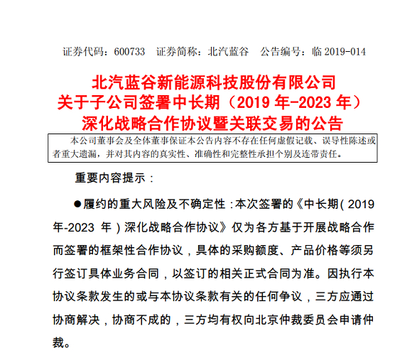 北汽蓝谷称其子公司北汽新能源近日与普莱德、宁德时代签署《中长期(2019年-2023年)深化战略合作协议》。宁德时代和普莱德对向北汽新能源供应的动力电池系统产品,每年给予最大诚意的优惠价格,并体现在普莱德直接向北汽新能源供应的动力电池系统产品价格中。另外,宁德时代与 [详细]