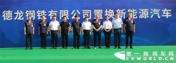 7月30日上午,邢台德龙钢铁有限公司置换北奔重汽新能源汽车启动会暨签约仪式圆满举行。邢台市信都区副区长庞保林,南石门镇党委副书记、镇长尚瑞,信都区生态环境局副局长赵卫东,北奔重型汽车集团有限公司董事李日明、新能源事业部常务副总经理其尔曼、营销公司副总经理赵杰,营销公司大客户部部长李柱、德龙集团执行总裁兼德龙钢铁总经理刘国旗,公司领导肖然、郭晓亮,中层领导及职工代表参加仪式。仪式由德龙钢铁有限公司副总经理王京彬主持。
