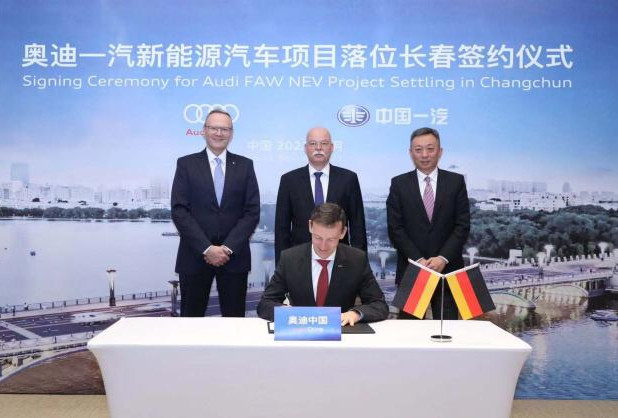1月18日,中国第一汽车集团有限公司与奥迪汽车股份公司、长春市人民政府共同签署协议,宣布奥迪一汽新能源合资项目落户长春。此次奥迪一汽新能源合资项目规划引入PPE平台,为奥迪与保时捷共同开发的高端纯电动车平台,其首个工厂计划投资额超过300亿人民币,首款车型将于2024年在长春投产。同时,未来PPE产品将由一汽-大众全资子公司—一汽奥迪销售公司进行销售。 [详细]
