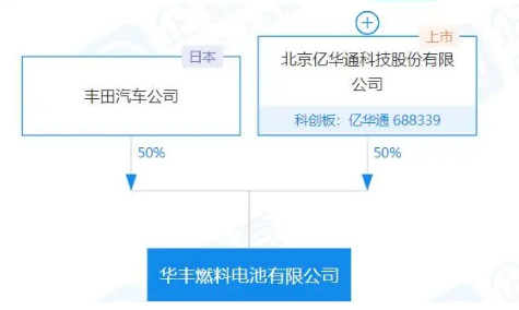 6月28日,华丰燃料电池有限公司成立,法定代表人为董长征,注册资本45亿日元,经营范围包含:制造燃料电池及零配件;委托加工燃料电池及零配件;销售燃料电池及零配件、汽车零配件等。根据股权穿透图显示,丰田汽车公司持股50%. [详细]