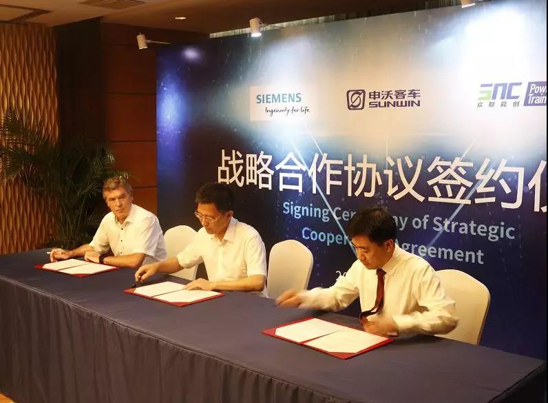 申沃客车将携手西门子和众联能创,进一步开拓上海和拉美、中东、亚洲等海外市场,共同研发、生产最具竞争力、安全可靠的商用电动巴士,打造新能源商用巴士全球化优质品牌和产品。