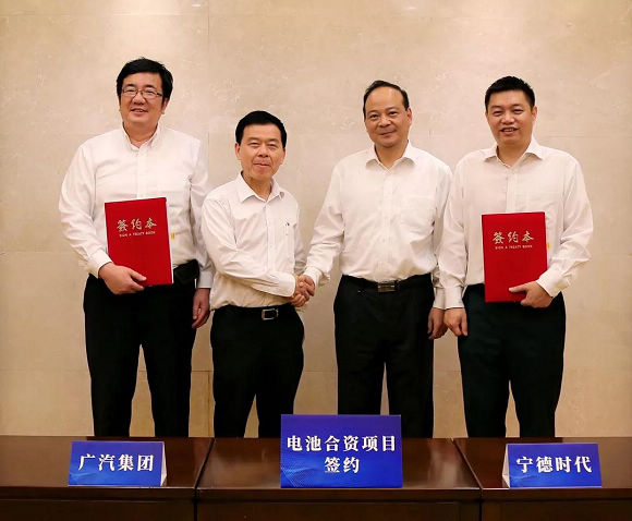 2018年7月19日,“广汽集团和宁德时代电池项目合作协议签约仪式”在广州市政府举行。广州汽车集团股份有限公司(以下简称广汽集团)与宁德时代新能源科技股份有限公司(以下简称宁德时代)将在动力电池领域于广州共同组建两家合资公司。广州市长温国辉、广汽集团董事长曾庆洪、宁德时代董事长曾毓群等出席仪式并见证签约,广汽集团常务副总经理吴松、宁德时代副总裁谭立斌分别代表合作双方签署两家合资公司的合资合营合同。
