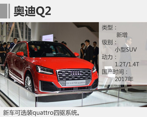 待选车型中最有争议的就属刚刚在德国Ingolstadt工厂下线的全新奥迪Q2。该款车型是一款定位低于Q3的小型一汽-大众目前已经拥有Q3和Q5两款SUV车型的生产资质,那Q2国产由“上汽大众奥迪”来生产看起来也是合情合理的。