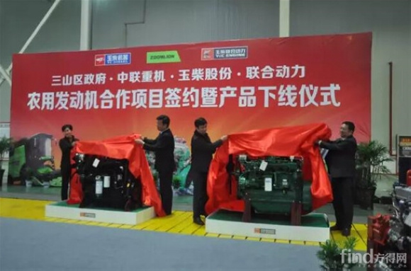 会上,三山区政府、中联重机、玉柴股份和玉柴联合动力四方代表共同签订了玉柴农用发动机生产的战略合作协议,并共同见证了联合动力生产的首批YC6J/YC6A农用发动机的顺利下线。