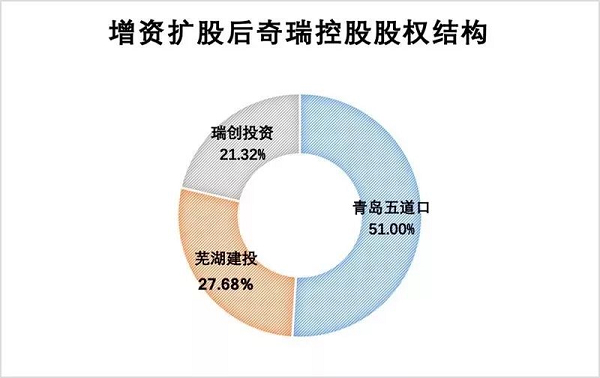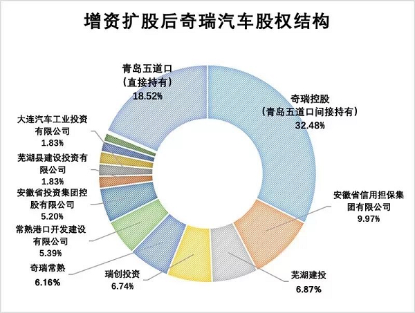 青岛五道口持有奇瑞控股股权的比例将达到51%,并间接持有奇瑞汽车32.4815%的股权,使其所持奇瑞汽车的股权总比例也达到51%。