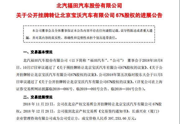 宝沃67%股权成功转让 ,福田汽车“减负”聚焦商用车!