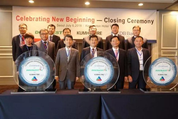 7月6日,双星与韩国产业银行(KDB)在韩国首尔完成锦湖轮胎股权的交割,双星以约39亿人民币持有锦湖轮胎45%股权,正式成为其控股股东。而KDB等债权团将继续持有23%的股份,保持第二大股东地位。至此,这一被称为全球“最曲折、最壮丽、最离奇”的跨国并购案终于画上了一个圆满的句号。