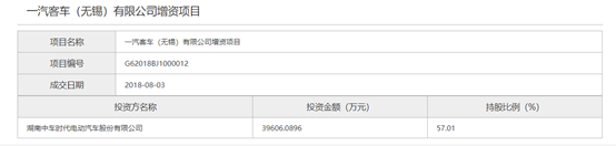以3.96亿元的投资金额,持股一汽客车(无锡)有限公司(以下简称一汽锡客)57.01%的股份,增资项目已于8月3日完成交易。此次,增持后中车电动将成为一汽锡客的控股股东。