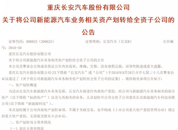 近日,长安汽车发布公告称,为适应长安汽车新能源汽车业务发展,长安汽车拟进行内部资产重组,将公司与新能源汽车业务相关的部分资产以及与其相关的业务、人员划转至公司全资子公司重庆长安新能源汽车科技有限公司。