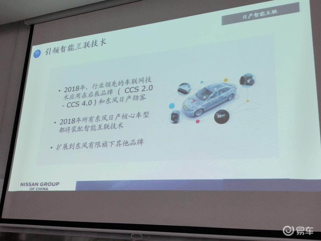 在智能互联技术方面,目前已有行业领先的智能互联中控系统搭载在启辰品牌车型以及东风日产劲客上。2018年内,所有东风日产核心车型均将搭载智能互联技术,并且还会在未来扩展至东风旗下其他品牌上。
