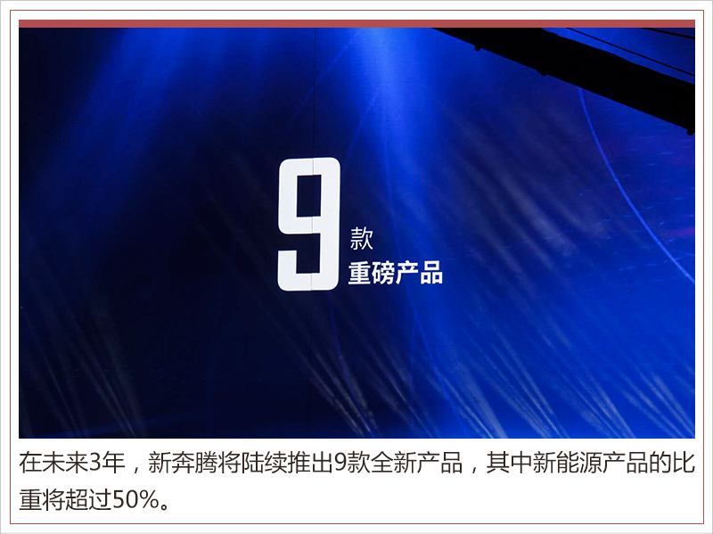 根据规划,在未来3年,新奔腾将陆续推出9款全新产品,柳长庆表示:“将推出5款新能源产品,4款燃油车型,另外未来新能源车型将采用新平台,出产SUV和轿车。”目前,奔腾B50