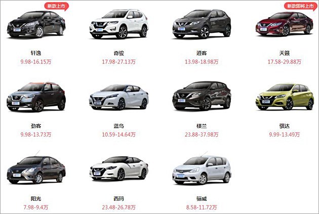目前日产在售车型就有11款,轿车从入门级骐达、阳光、轩逸到中级车天籁、西玛都有覆盖,SUV也从小型到中型进行了覆盖。