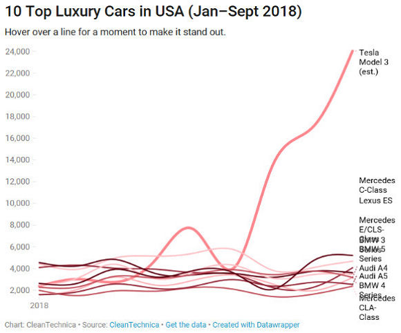研报引用的数据主要在论证对特斯拉需求的持久性。今年前9个月,特斯拉Model 3完全占据了中型豪华车市场的主导地位,更贵的Model