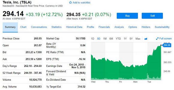 全球电动车巨头特斯拉将原定于11月7日发布的2018年三季度财报,提前到本周三(10月24日)美股盘后公布,被市场认为是利好消息。香橼研究等多家做空机构转而看涨特斯拉,也令特斯拉周二股价逆市大涨。