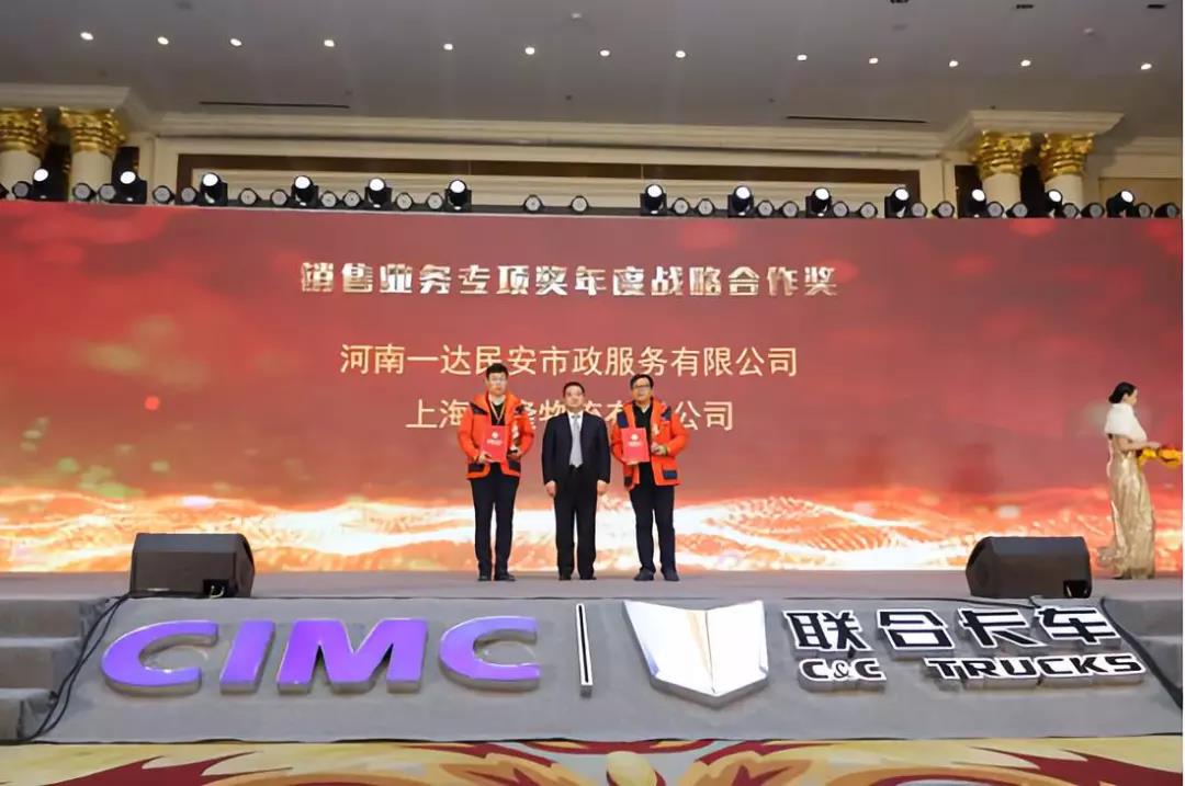 联合卡车营销公司副总经理丁传满为销售业务专项奖年度战略合作奖获得者颁奖