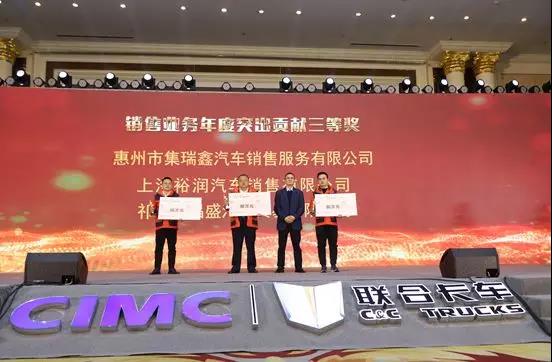 联合卡车总经理助理刘建中为销售业务年度突出贡献三等奖获得者颁奖