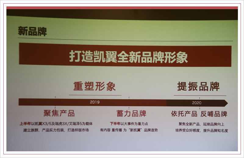 智联化等理念,不断强化品牌实力。2019年,凯翼汽车将重塑形象,通过有内容、重传播为“新凯翼”品牌造势,并将以产品反哺品牌,培养受众好感度,提升品牌知名度。