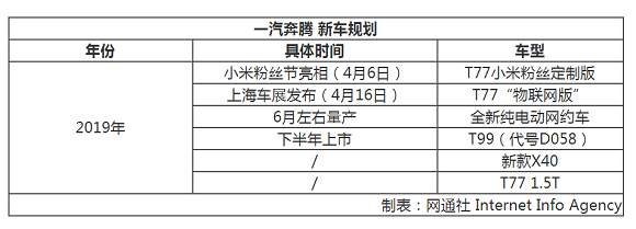 根据规划,在2019年,一汽奔腾将有多款新车陆续推出。