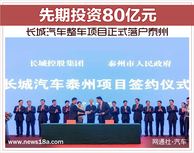 长城汽车2018年销量达105万辆,连续三年突破百万辆,长城汽车将2019年度的销量目标定为120万辆。日前,从官方获悉,泰州市人民政府与长城控股集团正式签约,投资80亿的长城汽车整车项目正式落户泰州港经济开发区。