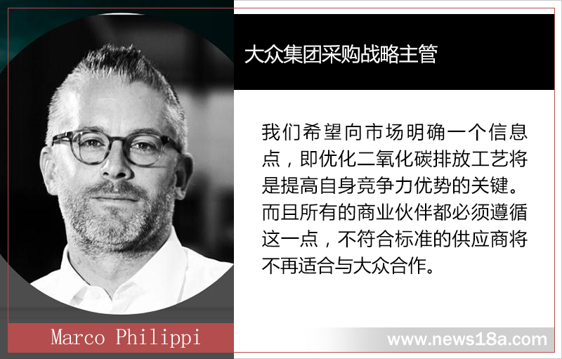 Philippi)在大众的工厂表示:“我们希望向市场明确一个信息点,即优化二氧化碳排放工艺将是提高自身竞争力优势的关键。而且所有的商业伙伴都必须遵循这一点,不符合标准的供应商将不再适合与大众合作。”