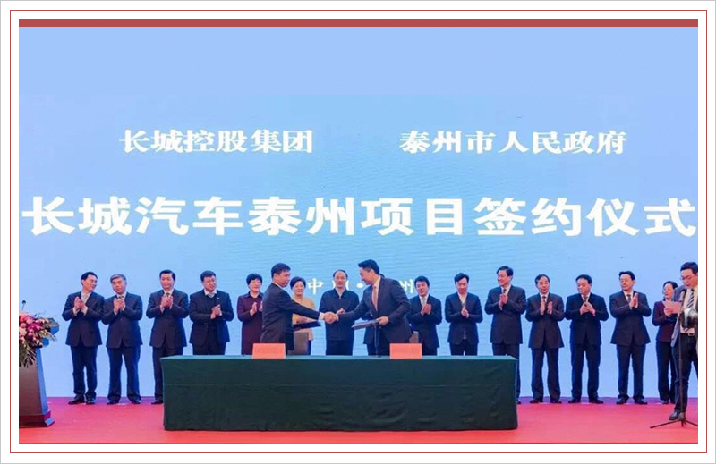 而在几天前,长城控股集团刚刚与泰州市人民政府完成签约。先期投资80亿元,将在高港区建设汽车整车、内外饰及底盘制造项目。同时,规划实施以汽车整车制造为核心、关键零部件为配套及汽车金融、汽车保险、共享出行等业务,构建完整的汽车产业链体系,打造华东地区最具影响力的汽车科技产业园。