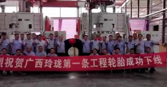 当天,玲珑轮胎广西工厂第一条工程胎下线。