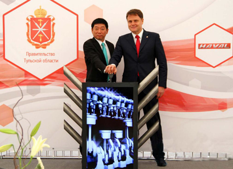 长城汽车董事长魏建军与俄罗斯图拉州前任州长格鲁杰夫为图拉工厂奠基