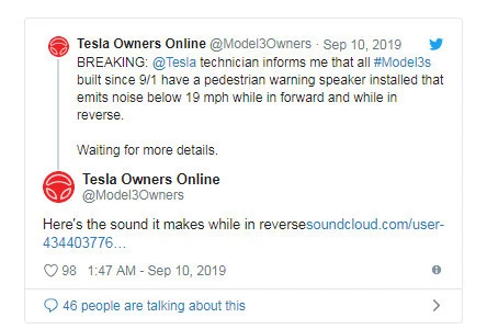特斯拉考虑在Model 3中安装噪音机 通过发出声音提醒行人