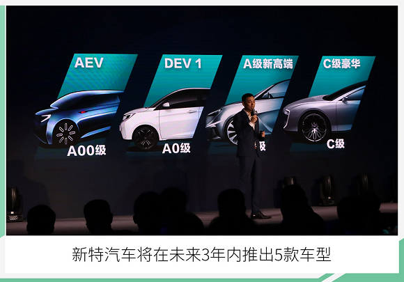 此外,新特汽车还公布了其产品战略:新特和GYON双品牌未来3年内推出5款车型,覆盖A00级到C级车,其中专为出行领域打造的A00级新车“AEV”将于今年年底亮相,明年正式上市。
