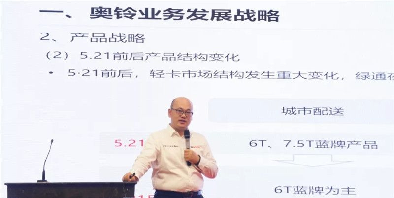 在福田奥铃的营销会上,奥铃事业部总裁李杰总作题为《奥铃业务发展规划》的报告,会上指出从产品规划上按照应用场景和客户需求,重新定义产品升级,要求从品牌、研发、服务、营销能力等方面持续提升、不断调整。李杰总指出:“我们的品牌架构应该按发动机、应用场景划分,通过价值升级、性能升级、品种拓展满足客户需求;我们的产品架构应该把握轻卡结构变化,绿通夜间运输、物流场站转运客户向黄牌转移。针对市场发生的变化,奥铃业务产品格局迅速调整,逐步形成蓝牌无忧+黄牌合规+中卡补充的格局,为营销打好基础。专用车产品聚焦国六产品开发、核心品类布局,巩固现有冷链、危化、服务类产品,协同欧马可重点突破市政路政、环卫类产品;而我们的服务战略应该解决客户在车辆在运营过程中的痛点,通过全方位发力、救援服务三小时达、一次进站来提升客户满意度;最重要的,我们的供应链管理应该在2019年度降低供应链成本5%,通过降低供应链成本,实现奥铃与供应商双赢。最终,李杰总提出了福田奥铃的三年目标,即:全年确保7万台,达到行业N0.2;2020年挑战10万台;2021年挑战15万台,高端5万台,5亿利润。