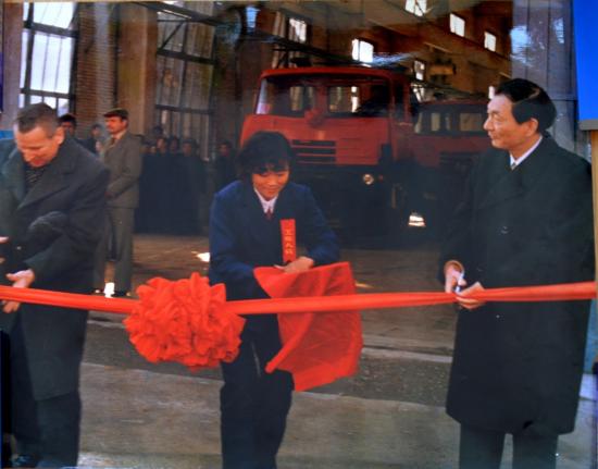 【1985年11月10日T815装配线举行投产剪彩仪式时任国家经委副主任的朱镕基出席并题词】