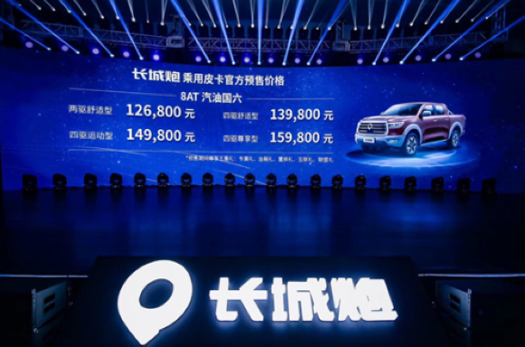8月18日,长城炮系列正式开启预售,作为中国皮卡3.0时代(多用途乘用化时代)首款产品,炮系列最大的特点是“五化”新生态,即乘用化、智能化、网联化、定制化、清洁化。此外,炮系列基于专属平台——全新P71平台打造,是新平台推出的首款产品,将具有更舒适、更安全、拓展性强、轻量化的优势。
