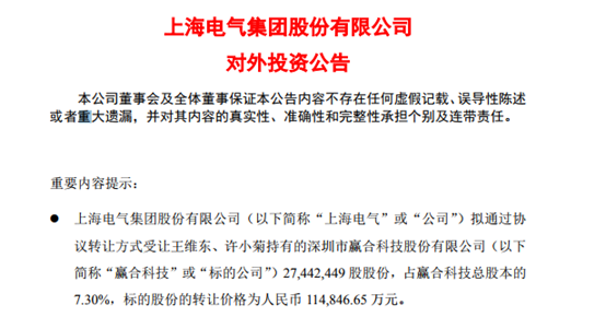 上海电气11.49亿收购赢合科技7.3%股份