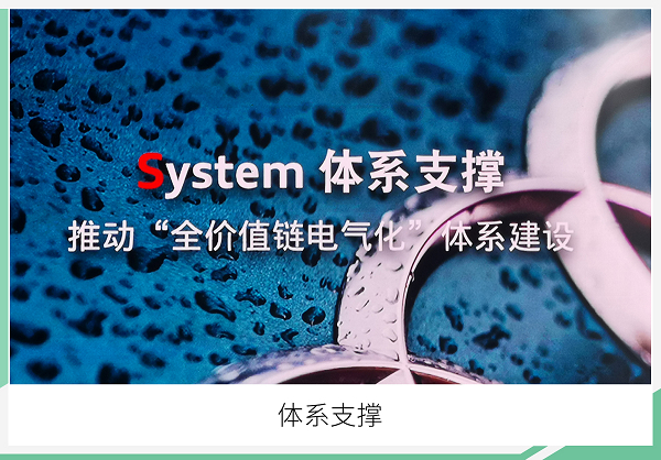 首先是在体系支撑(System)方面,奥迪在华将依托一汽-大众的支持,从研发、 制造、质保、营销、组织五大领域实现全价值链的电气化建设。