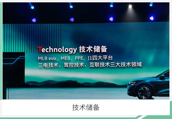 在技术储备(Technology)方面,奥迪将在大众集团体系的MLB evo、MEB、PPE、J1四大平台,以及三电技术、驾控技术、互联技术三大技术领域的基础上,打造更符合中国市场消费者用车习惯的产品,同时也将不断探索和创新,致力解决用户在电气化时代的出行痛点。