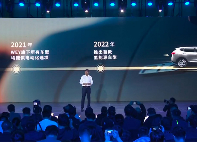 WEY将加速实施电动化战略和全面脱碳计划,全面探索插电混动、纯电动、氢动力等解决方案,打造符合全球消费者多元化需求的SUV产品。到2021年,WEY旗下所有车型均提供电动化,推出涵盖BEV(纯电动)/PHEV(插电式混动)等多种驱动形式的新能源产品;2025年推出首款氢能源车型;2030年则实现新能源的全面转型,停售传统内燃机汽车,新能源车型销量占比达到50%;并力争在2040年实现碳中和目标。