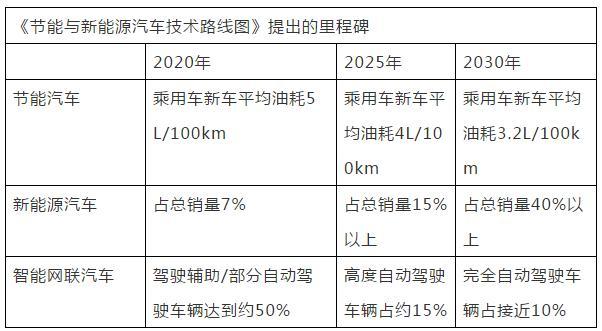 此前,《节能与新能源汽车技术路线图》(1.0版)提出过未来十年的里程碑目标。