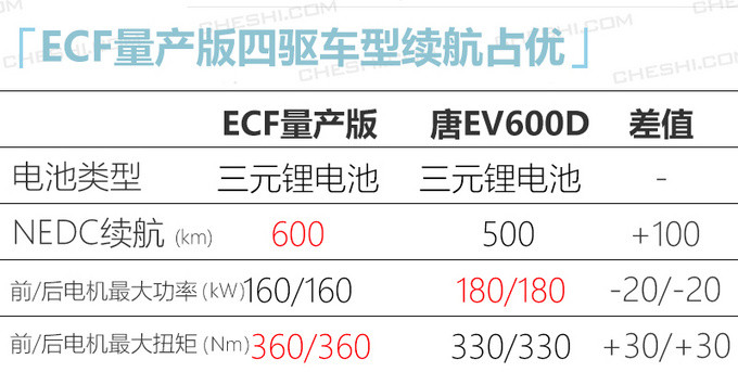 在动力上,由北汽集团、北京电控以及韩国SK集团三方联合成立的BEST(即北电爱思特)目前已竣工投产,其产出的811(NCM)锂离子软包电池,将为ARCFOX提供配套。从数据来看,ECF量产版(四驱)车型NEDC工况续航里程为600公里,高于同级别比亚迪唐EV的500公里(工况法续航),同时前/后电机最大扭矩也高于竞争对手。