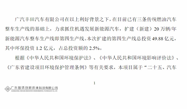 广汽丰田新能源车产能扩建项目一期投产,释放产能20万台/年