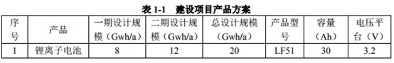 根据该公司的建设项目环境影响报告表显示,建设项目主要原辅材料的正极材料为磷酸铁锂,这也意味着该项目生产的主要产品为磷酸铁锂电池。