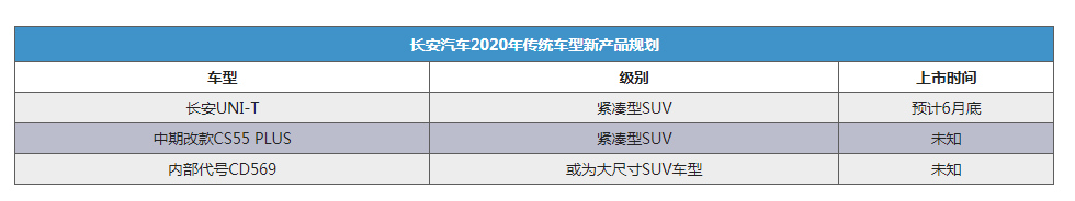 增两款车型 曝长安汽车2020年产品规划