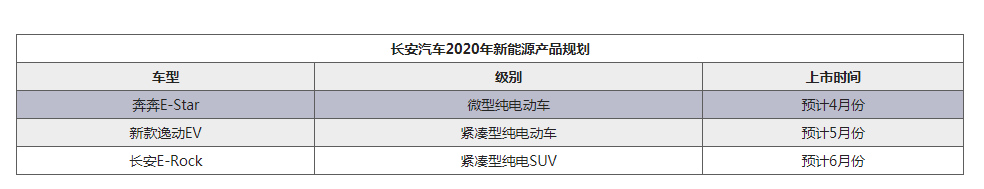 除此之外,今年长安汽车还将重点推出新能源汽车产品,目前已知车型包括奔奔E-Star、新款逸动EV、长安E-Rock三款纯电动车型,三款新车有望在今年上半年正式上市。