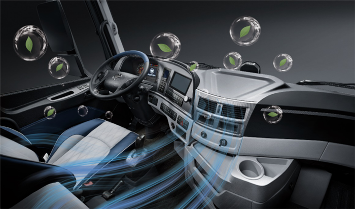 为了保证广大卡友的用车健康安全,福田汽车率先在商用车领域使用CN95空调滤芯,隔绝0.3微米颗粒物、过滤PM2.5、PM10、飞沫、细菌等有害物质,改善车内空气质量。