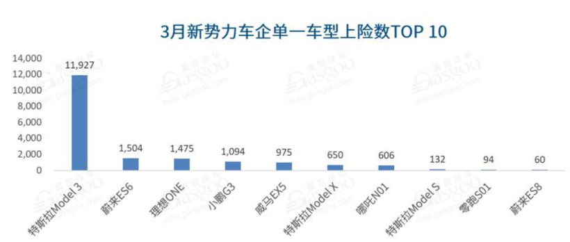随2019年补贴政策的推出,我国新能源汽车自去年第三季度以来销量持续向下,进入2020年,叠加春节假期和疫情影响,下行趋势加剧。在这一背景下,特斯拉仍发挥了极强的领先优势。据中汽数据中心公布的零售数据显示,特斯拉Model 3单月上险量达11,927台,位居新势力单一车型3月上险量之首,且领先位居第二位的蔚来ES6一万多台。