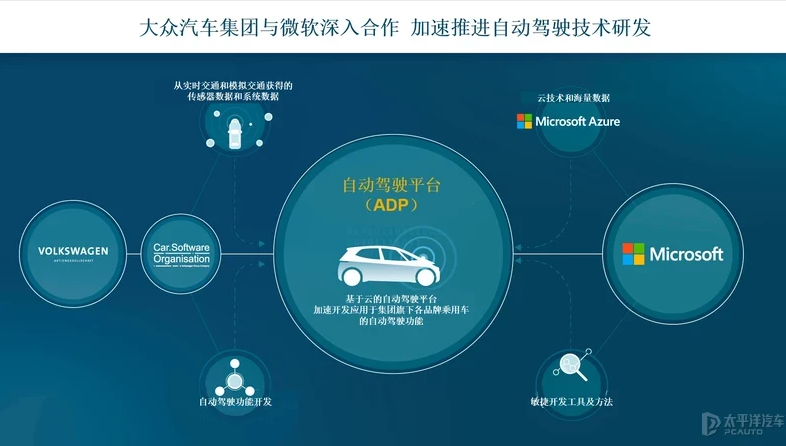 2月23日,据大众汽车官方消息,集团旗下软件公司Car.Software将与微软展开合作,将会进一步强化自身在自动驾驶解决方案领域的开发能力。在微软Azure平台上构建基于云计算的自动驾驶平台(ADP),同时借助Azure的计算和数据处理能力加快在全球范围内推出自动驾驶。  通过在Azure上运行自动驾驶平台,Car.Software公司将进一步提升集团旗下各品牌乘用车高级驾驶辅助系统(ADAS)和自动驾驶功能的开发效率。早在2018年,大众汽车集团就与微软达成战略合作伙伴关系,共同研发大众汽车云服务,未来,双方的合作将扩展至集团所有数字化服务和移动出行产品。