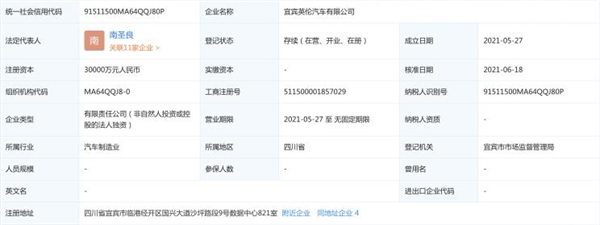 日前,据企查查显示,宜宾英伦汽车有限公司发生工商变更,注册资本由2亿人民币增至3亿人民币,增幅50%。该公司成立于2021年5月,法定代表人为南圣良,经营范围含新能源汽车整车销售;新能源原动设备制造;新能源汽车换电设施销售等。