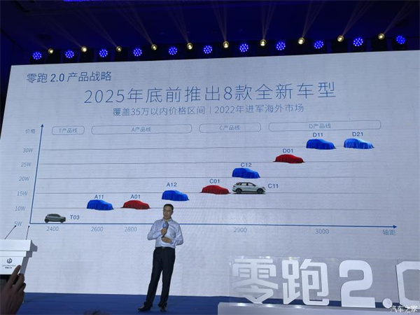 基于2.0战略的“聚焦产品”部分,零跑汽车将在2025年底前推出8款新车,轴距覆盖2600-3100mm。在2022年10月份,零跑汽车还将进军海外市场。