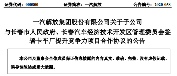 拟投资11.25亿元 解放长春基地将新建J7智能装配线等3大项目